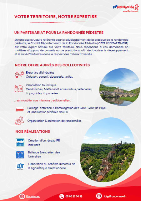 La professionnalisation des Commissions Sentiers & Itinéraires se traduit aujourd’hui par une reconnaissance croissante de votre expertise par les acteurs publics locaux. Les collectivités recherchent des partenaires capables d’apporter un appui technique, stratégique et opérationnel dans la conception, la structuration, la valorisation et le suivi des itinéraires de randonnée. Dans ce contexte, il est essentiel de valoriser pleinement votre savoir-faire, non seulement sur le fond – expertise technique, maîtrise des outils fédéraux, connaissance fine du territoire – mais aussi sur la forme, à travers des supports de communication clairs, structurés et professionnels.