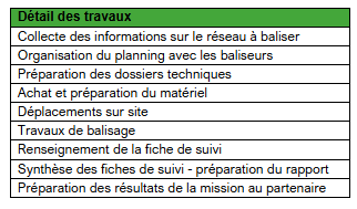 Détail des travaux à réaliser en filigrane de l’action « balisage de 12 itinéraires PR »
