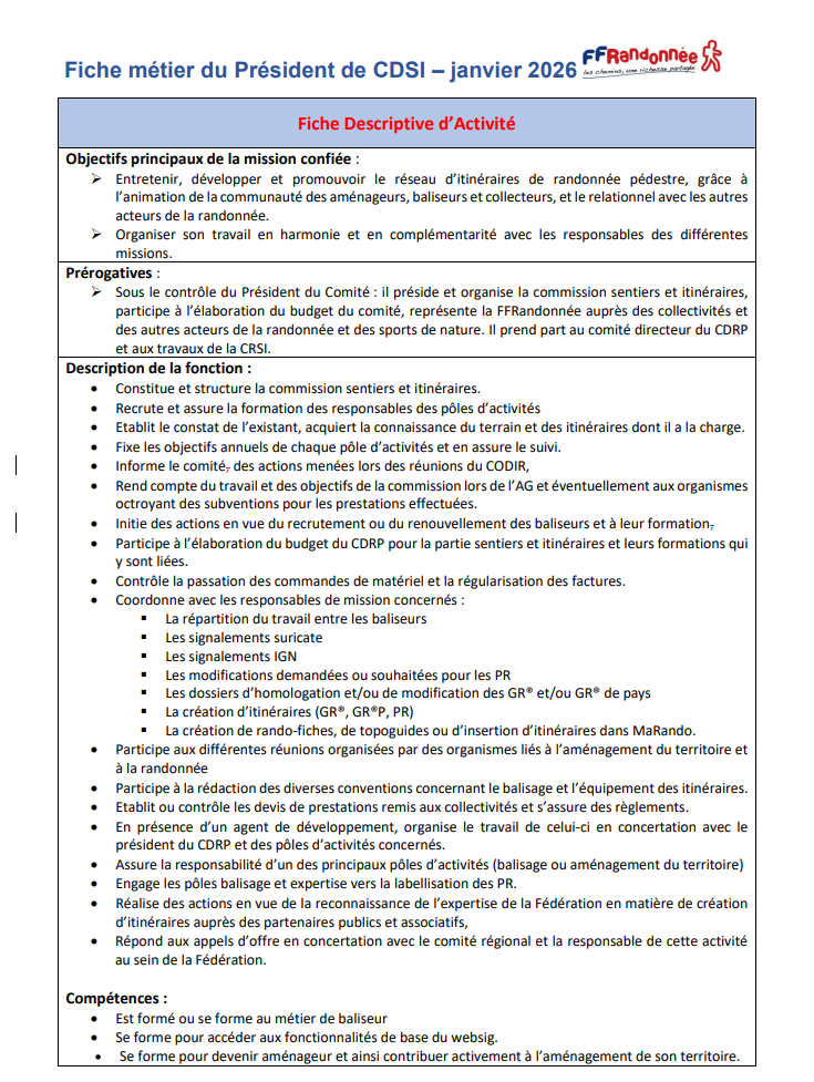 Vous trouverez ci-dessous la fiche métier du président de la CDSI, réalisée en collaboration avec le service Formation. Ce document a été élaboré en janvier 2026.